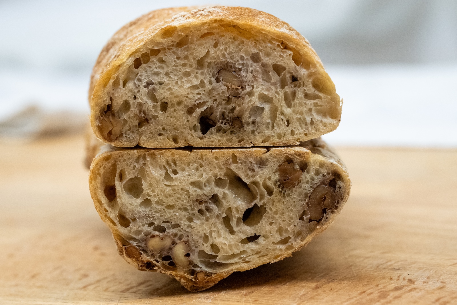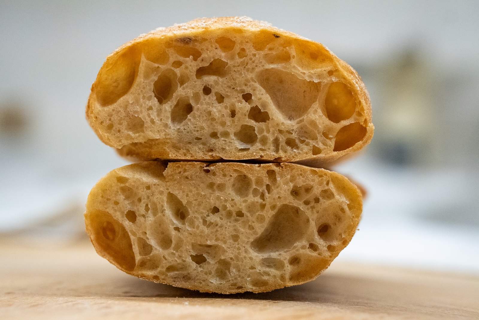 Luftig, knusprig und aromatisch: Aus Weizenmehl und 36 Stunden Teigruhe für vollen Geschmack und Verträglichkeit. Gewicht pro Ciabatta ca. 450 g.